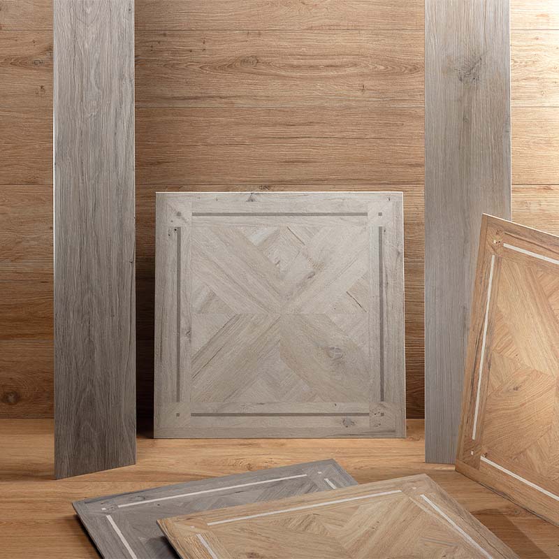 Produktinformation Cercom Briccole Holzoptik Fliese Intarsio Tortora 60 x 60 cm