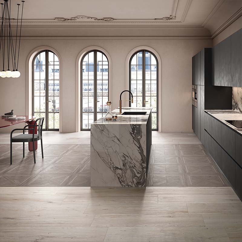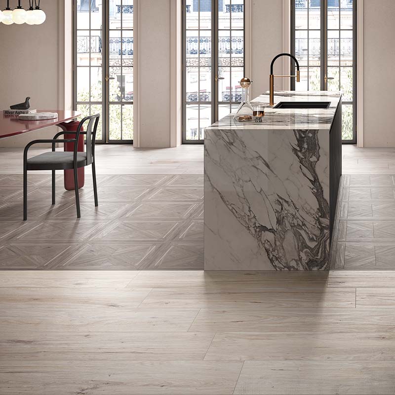 Die Feinsteinzeug Bodenfliese in Holzoptik aus der Serie Briccole von Cercom ist eine Hommage an die kunstvolle Tradition der Intarsienböden. Diese Fliesen kombinieren das historische Handwerk mit modernster Technologie und bieten ein Design, das sowohl zeitlos als auch innovativ ist. Mit dem Format von 60 x 60 cm fügen sich diese Fliesen nahtlos in jedes Raumkonzept ein und schaffen durch ihre Kastenoptik ein beeindruckendes Muster, das den Blick auf sich zieht.