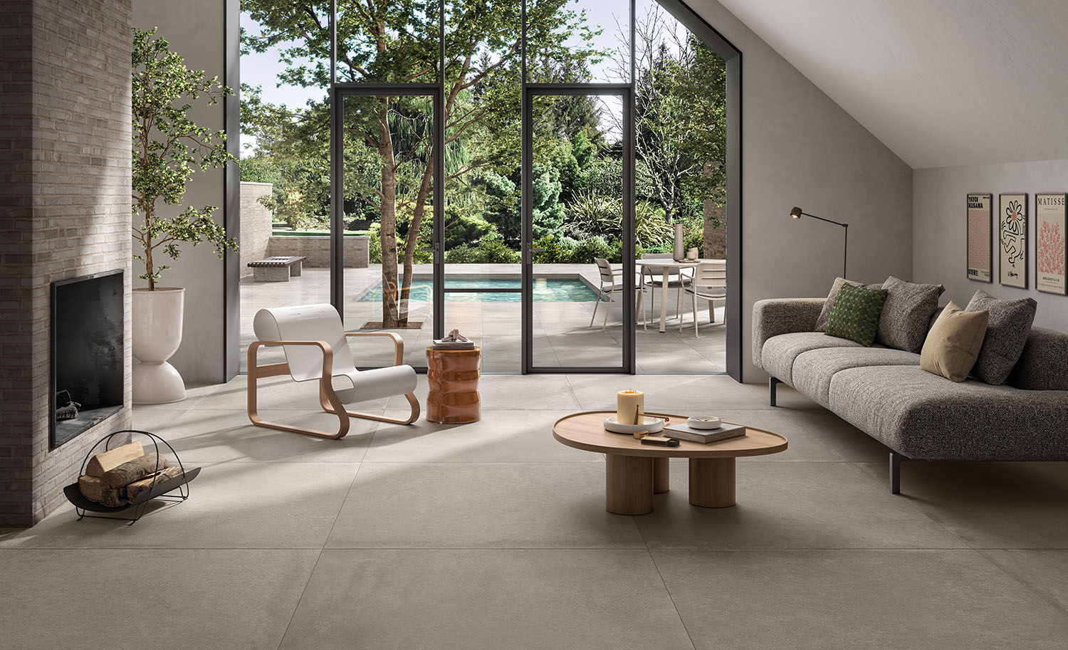 Im Badezimmer sorgen graue Fliesen für eine moderne Wellness-Atmosphäre. Helle Grautöne an der Wand, kombiniert mit etwas dunkleren grauen Bodenfliesen, schaffen Tiefe und lassen den Raum großzügig wirken. Mit weißen Sanitärelementen und schwarzen Armaturen entsteht ein besonders trendiger Kontrast. In der Küche punkten graue Fliesen vor allem durch ihre Pflegeleichtigkeit. Ob als robuste graue Bodenfliesen in Feinsteinzeug oder als spritzwasserbeständige graue Wandfliesen hinter der Arbeitsplatte: Flecken lassen sich leicht entfernen, und der Raum wirkt stets aufgeräumt und modern. Auch im Wohnzimmer sind Fliesen in Grau eine ausgezeichnete Wahl, besonders in großen Formaten. Sie erzeugen eine ruhige, großzügige Fläche, die sich hervorragend mit Sofas, Teppichen und Wohnaccessoires kombinieren lässt. Wer den Innen- und Außenbereich optisch verbinden möchte, setzt auf frostbeständige graue Fliesen auf der Terrasse oder dem Balkon – für einen harmonischen Übergang von drinnen nach draußen.