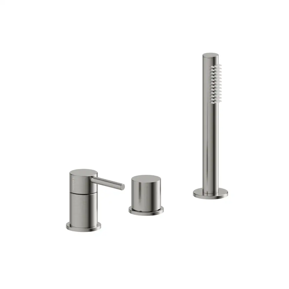 Die Herzbach DEEP iX Dreiloch-Wannenarmatur für Fliesen- oder Wannenrandmontage verbindet präzise Bedienung mit einer hochwertigen Optik in Edelstahl matt gebürstet. Die LOGIC-SoftEmotion-Keramikkartusche ermöglicht eine leichtgängige und genaue Steuerung von Temperatur und Wassermenge, während der Drehumsteller den schnellen Wechsel zwischen externer Wannenbefüllung und Handbrause erlaubt. Über den Flexschlauch mit 1/2" IG lässt sich eine externe Wannenbefüllung komfortabel anschließen. Die ausziehbare Stabhandbrause bietet flexible Anwendungsmöglichkeiten beim Abbrausen von Körper und Wanne; der glatte Nylon-Brauseschlauch ist angenehm leicht, robust und pflegefreundlich. Für zusätzliche Sicherheit ist das System eigensicher gegen Rückfließen ausgelegt. Die Montage gelingt mit dem beiliegenden Befestigungsmaterial zügig und zuverlässig; erforderlich sind Lochbohrungen mit 35 mm Durchmesser. Ein rundum durchdachtes Set für eine klare, langlebige Badgestaltung.