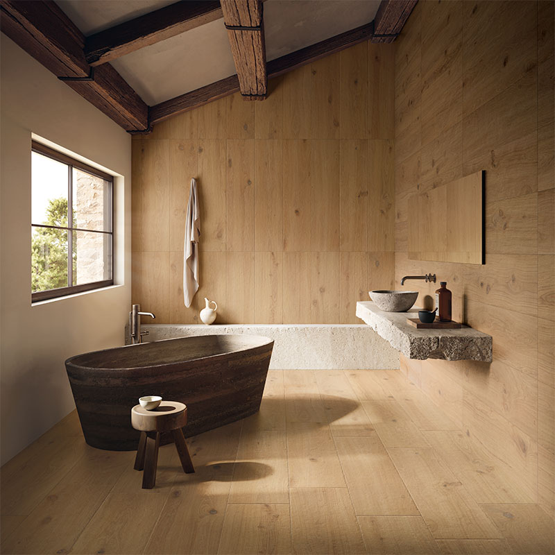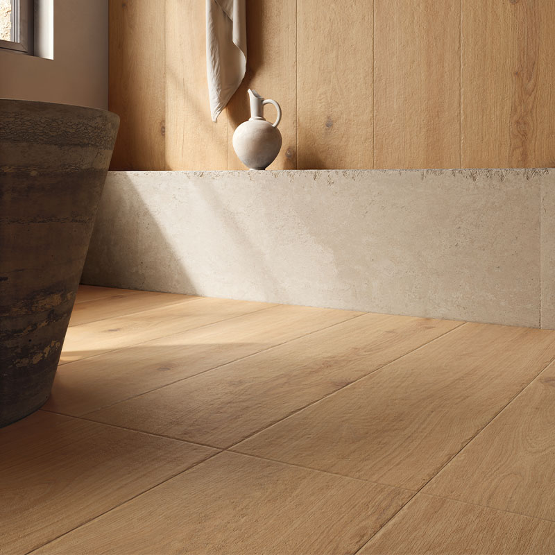 Setzen Sie mit der Legni D’Italia Bodenfliese in edler Esche-Optik stilvolle Akzente und schaffen Sie ein Ambiente, das Natürlichkeit, Langlebigkeit und italienische Eleganz harmonisch miteinander verbindet.
