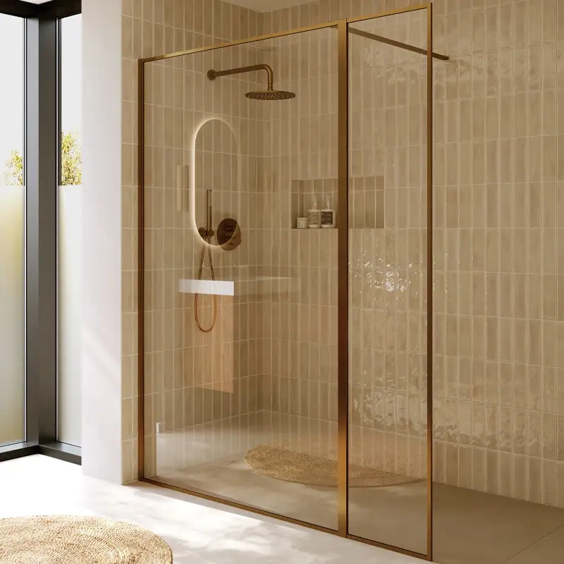 Die Define Duschkabine kann optional mit einem Dekoscreen ausgestattet werden und vereint ästhetisches Design mit erstklassiger Funktionalität, wodurch Ihre Dusche zu einem luxuriösen Rückzugsort wird. Gefertigt aus hochwertigem Aluminium und erhältlich in den trendigen Farben Gunmetal Matt und Copper Matt, verleiht sie Ihrem Badezimmer einen Hauch von Raffinesse und harmoniert perfekt mit modernen Armaturen. Das vielseitige Design der Define ermöglicht eine flexible Anpassung an unterschiedliche Raumgrößen, sodass sie sich nahtlos in jedes Badezimmerkonzept einfügt.