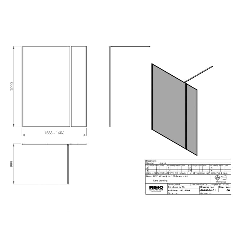 Die Riho Define Walk-In Duschabtrennung besticht durch ihr elegantes Design und ihre herausragende Funktionalität. Mit einer Höhe von 200 cm ist sie in den Breiten 160 cm und 180 cm erhältlich, die sich wie folgt zusammensetzen: Bei der Breite von 160 cm besteht das Festteil aus 120 cm Glas und wird durch ein zusätzliches Panel von 40 cm auf die Gesamtbreite erweitert. Für die Breite von 180 cm beträgt das Festteil 140 cm, ebenfalls ergänzt durch ein 40 cm Panel. Eine mitgelieferte Stabilisierungsstange von 100 cm sorgt für zusätzliche Sicherheit.