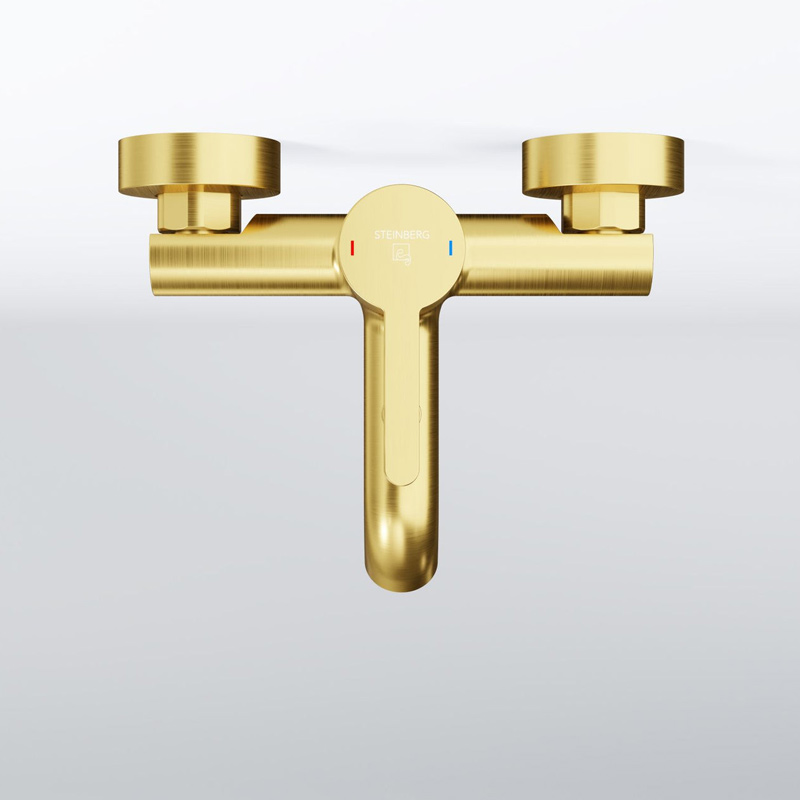 Die Steinberg Serie 341 Wannen Aufputzarmatur vereint modernes Design mit hochwertiger Technik und ist in den attraktiven Farbvarianten Chrom, Schwarz matt oder Gold Brushed erhältlich.