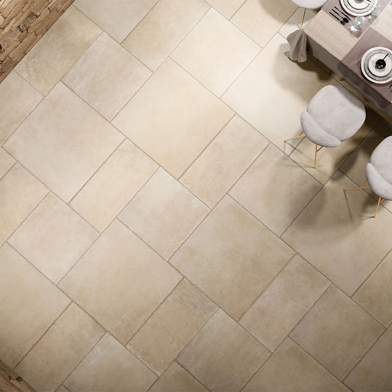 Gestalterisch ist Castelli Vanilla ein vielseitiger Teamplayer: Kombinieren Sie die warme Helligkeit mit hellen Hölzern, Sand- und Naturtönen für ein behagliches Ambiente oder mit Beton, Schwarz und Metall für eine klare, zeitgemäße Note. So verbindet diese Bodenfliese die Anmutung echten Natursteins mit der verlässlichen Qualität moderner Keramik – eine langlebige, stilvolle Basis für Interieurs, die Leichtigkeit, Beständigkeit und Design mit Selbstverständlichkeit vereinen.